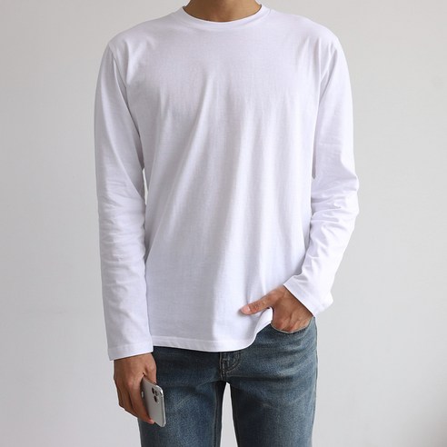 이 제품은 20수 긴팔 티셔츠로, 사계절 내내 활용할 수 있습니다. 단독으로 착용해도 좋고 레이어드하여 스타일링할 수도 있습니다. 두껍지도 얇지도 않은 적당한 두께로 쾌적한 착용감을 제공하며 넥 라인의 처리로 오래도록 컨디션을 유지할 수 있습니다.